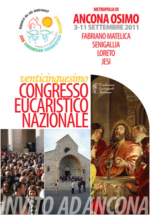 “L’opuscolo che vi arriva presenta nella sua ampia organicità il programma del XXV Congresso Eucaristico Nazionale che si celebrerà ad Ancona e nelle Diocesi della Metropolia (Loreto, Senigallia, Jesi e Fabriano-Matelica) nel prossimo settembre.” Si apre così la lettera dell’Arcivescovo di Ancona-Osimo S.E. Mons. Edoardo Menichelli che accompagna l’invio della pubblicazione sul CEN a tutti i Parrocci d’Italia, la quale illustra in modo semplice e facilmente percepibile il significato e l’articolazione del grande evento ecclesiale.
