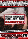 Un manifesto razzista Una immagine di una donna distesa in terra con le gambe allargate e una macchia di sangue sui vestiti strappati. Una scritta: “Se capitasse a tua madre, tua moglie o tua figlia?”. E poi: “Stupratori immigrati è giunta la vostra ora” con una richiesta precisa: “Chiudere i campi nomadi, espellere i rom. Subito!”.