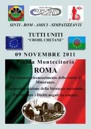 Il Giorno della Memoria. Senatori di diverse forze politiche italiane hanno presentato una proposta di legge per riconoscere la persecuzione su base razziale subita dalle comunità Rom e Sinte, durante il nazifascismo: Atto Senato n. 2558 "Modifiche alla legge 20 luglio 2000, n. 211, in materia di estensione del Giorno della Memoria al popolo dei Rom e dei Sinti", presentato il 15 febbraio 2011. L'Unione Europea ha chiesto all'Italia di predisporre entro dicembre 2011 una strategia nazionale, chiediamo urgentemente al Governo di istituire tavoli tecnici con le associazioni sinte e rom nazionali per affrontare varie questioni.